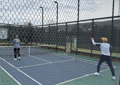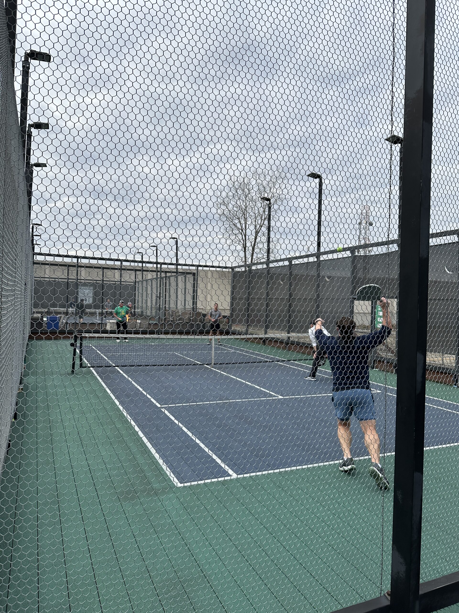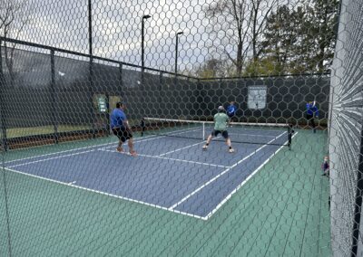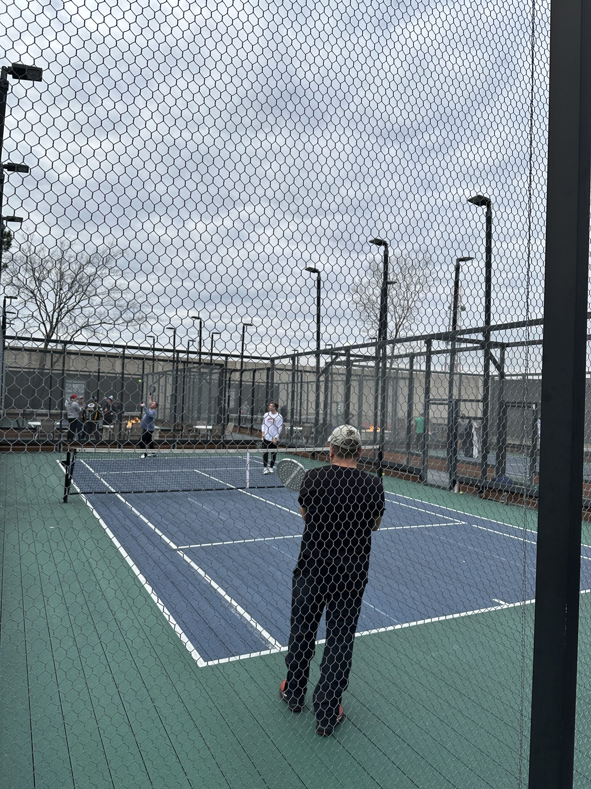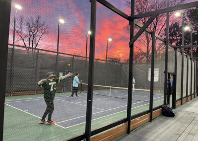 An opening match in front of the firepit of Court 5, with Nick & Tom winning the point (and the match 10-6) over Series 6 Tannaqua players Rose & LaPiana.