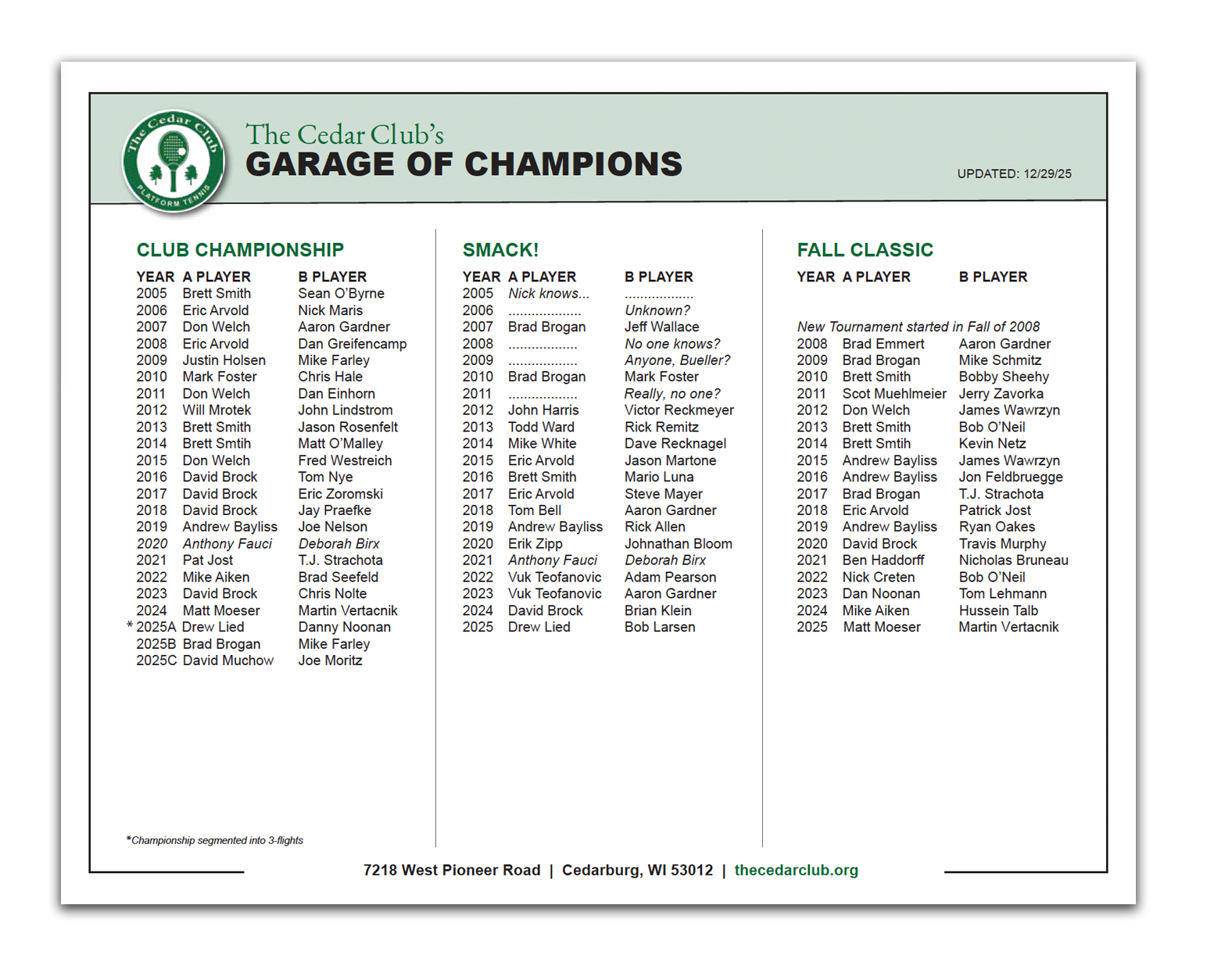 Over the holidays, all league and Thurs/Fri reserved courts will be removed from the calendar. Lessons should not be scheduled over the holiday breaks.