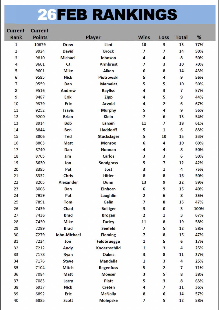 As always, be sure to be on time for your scheduled match at 6:00pm, 7:20pm or 8:40pm. If you can’t make it, it’s your job to find a suitable sub! Don’t wait til the last minute to find one.